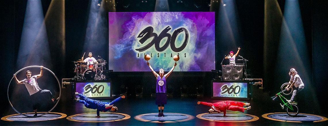 360 Allstars – The international smash hit returns! A phenomenal physical performance exploring all forms of rotation, 360 ALLSTARS connects street with elite in a supercharged urban circus.