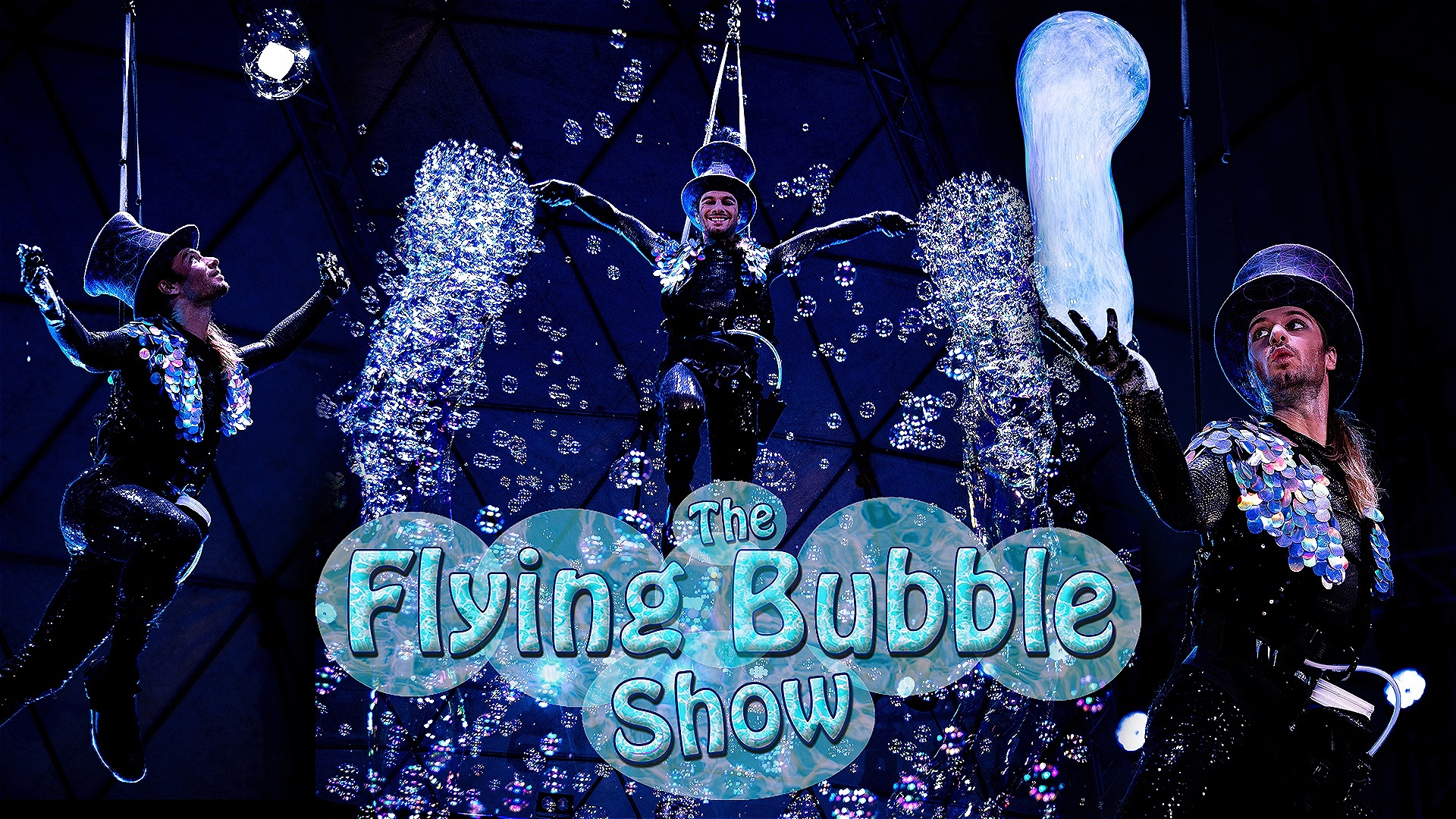 The Flying Bubble Show – Dive into a magical world where dreams and reality blur in a breathtaking fusion of bubble magic and aerial flight. Maxwell the Bubbleologist soars above the stage, creating millions of shimmering bubbles with every leap and twirl.